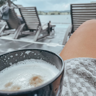 The outdoor bar overlooking the lake was a lovely touch and if I wasn't driving 3.5 hours home that evening I would have definitely treated myself to a Prosecco or two, however a cappuccino in the infinity pool was the next best thing.